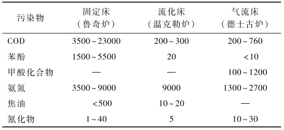 表1 不同氣化工藝產(chǎn)生的有機(jī)廢水水質(zhì)