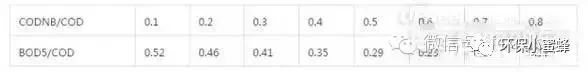 bod5/cod與codnb/cod之間有如下表所示的關(guān)系: